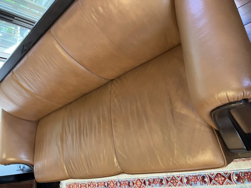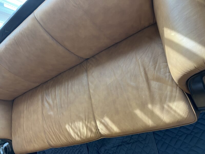 先日ご紹介した本革ソファの補修の続きで、今度は3人掛けのソファを補修させていただきました。2人掛け同様に、経年の表面塗装の劣化による擦り傷や猫ちゃんの引っかき傷がところどころあり、擦り傷を埋めて革専用塗装をいたしました。お客様のご自宅で施工のため、塗装ブースを作成し、ミスト等の影響が出ない様に注意し、施工を完了しました。新品かと見違えるようですとのお言葉をいただき、うれしい限りです。ありがとうございました。