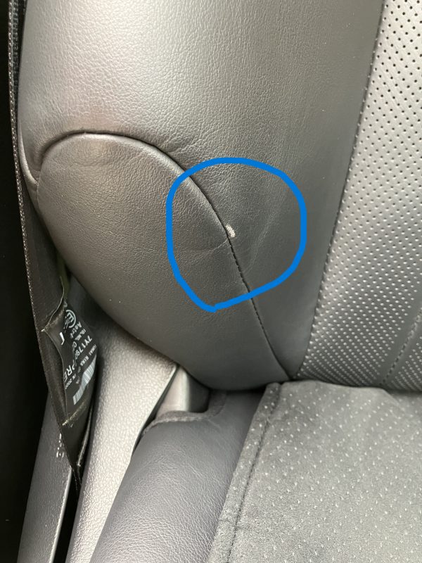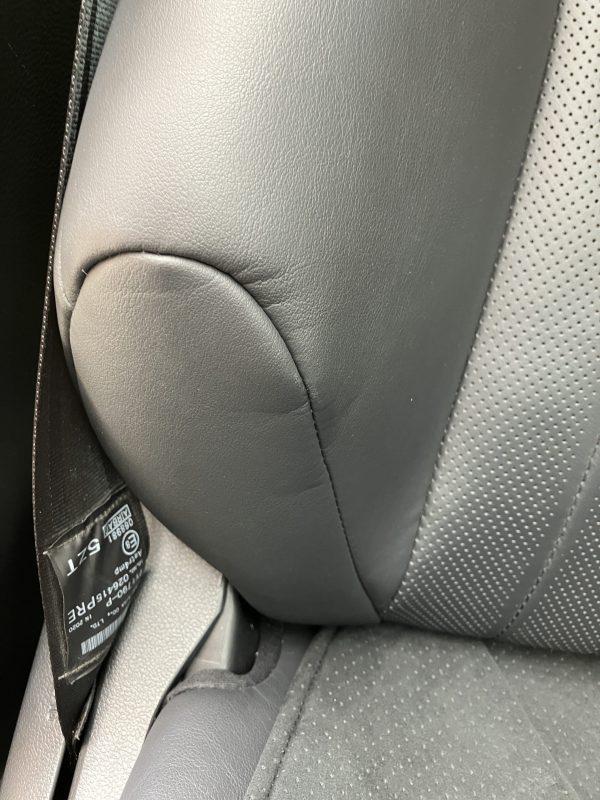 クラウン運転席のホールド部分の小さな擦れです。大きさにすると1~2mmくらい。黒色の生地だから、小さい傷でも白い擦れ跡が目立ちます。オーナー様にとっては気になります。傷が小さいと施工は簡単になると思われがちですが、実は傷が小さいと施工範囲も当然小さく納めなければならないので、パテ埋めやサンディング、スプレー塗装等のすべてでものすごく気を使います。それは施工範囲をむやみに拡げたくないからです。問題ない部分まで手を加えることはしたくないためです。しっかり細かく施工出来てよかった。ご依頼ありがとうございました。