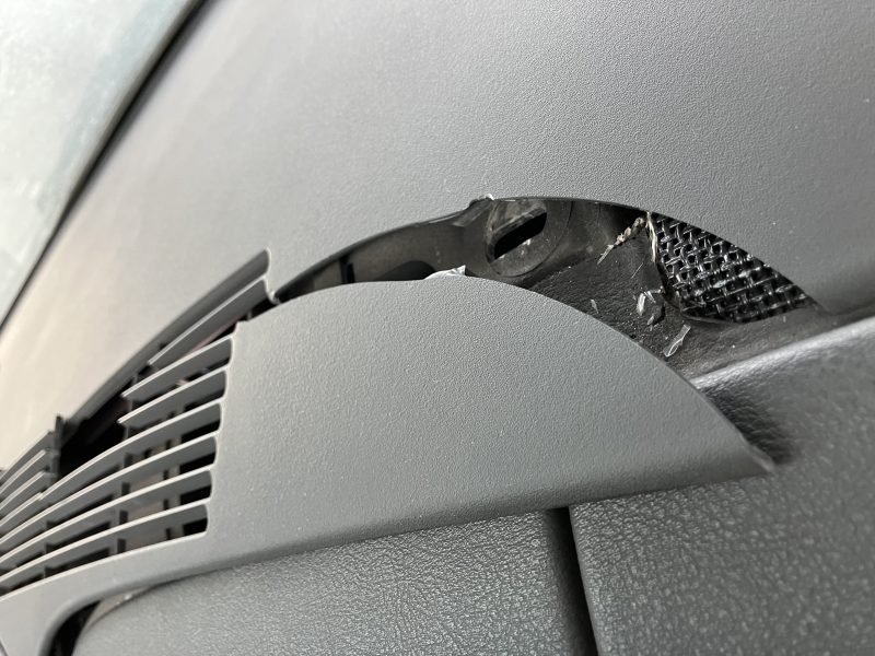 結構古いシボレーカマロのダッシュボード割れです。大きくパックリ完全に割れています。できれば裏から裏打ちして補強したいのですが、そのようなスペースもなく、接着剤で密着してからパテ埋めして塗装しシボ付け、艶合わせして仕上げました。再度割れる可能性があることをご了承頂いての施工となりました。カマロのフロントウィンドウの角度が小さくて、スプレーガンが入らず苦戦しましたが、何とか綺麗に仕上がりました。ご依頼ありがとうございました。