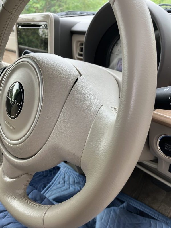 レザーハンドルの表面が変色しているため、塗装でリペアしました。社内クリーニング業者様からのご依頼です。おそらくハンドルカバーの内側樹脂とハンドルの合皮レザーが何らかの反応で茶色に変色したと思われます。クリーニングしても色落ちやべたつきがなかったので、革専用塗装しても大丈夫と判断しました。いつもご依頼ありがとうございます。