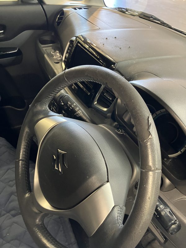 大手中古車販売店様からのご依頼です。表皮がほとんど剥げていて、クリーニング時には容易にはげてしまう状態でしたので、塗装下処理に時間がかかりました。オーナー様が純正新品や社外品等の交換をご検討されたらしいのですが、交換は高額なため最終的にリペアをご選択されました。仕上がりは、新品状態の再現とまではいきませんが、かなり綺麗に仕上がったと思います。ご依頼ありがとうございました。