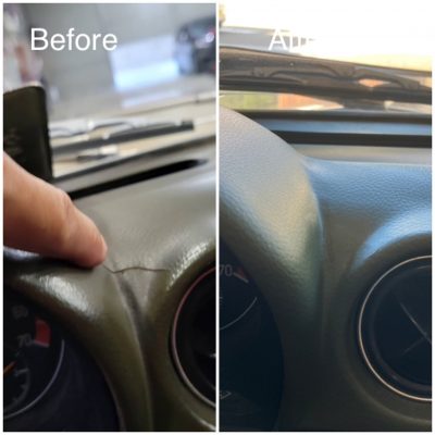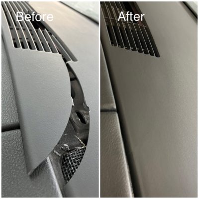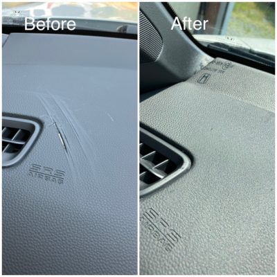 ダッシュボードについたキズを補修します。プラスチック・本革・合皮・ビニールレザーの素材に対応することが可能です。