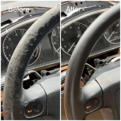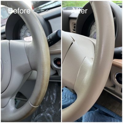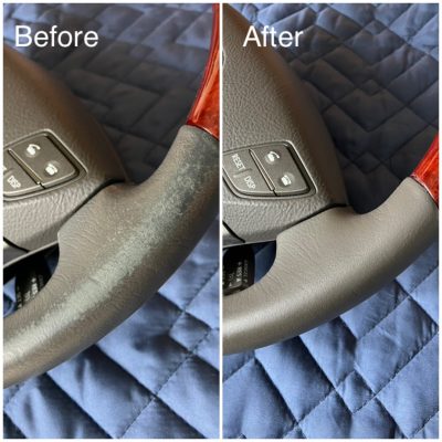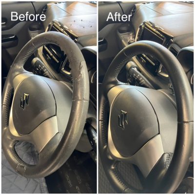 経年劣化や爪の引っかき傷などで意外とダメージを受けやすいステアリングも修理いたします。