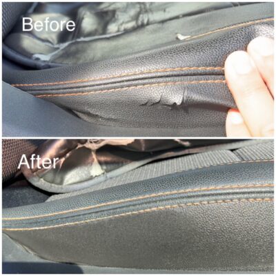 気になっていたタバコの焼け焦げ穴や劣化によるレザーシートの傷み、モケットシートのほつれなどにも対応致します。