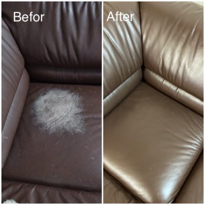小児科病院の待合室ソファ補修です。表皮が大きくめくれている部分と、直径2cmくらいの深い穴がありました。子供さんが待ってる間に、表皮のめくれを拡大したり、穴の下をほじほじしたりで、ほっておくと更に被害拡大するかもしれないということで、ご依頼を頂きました。仕上がりをオーナー様にご確認頂いた際、「えっ全然わかりません」とのお言葉を頂き、嬉しい限りです。ご依頼ありがとうございました。